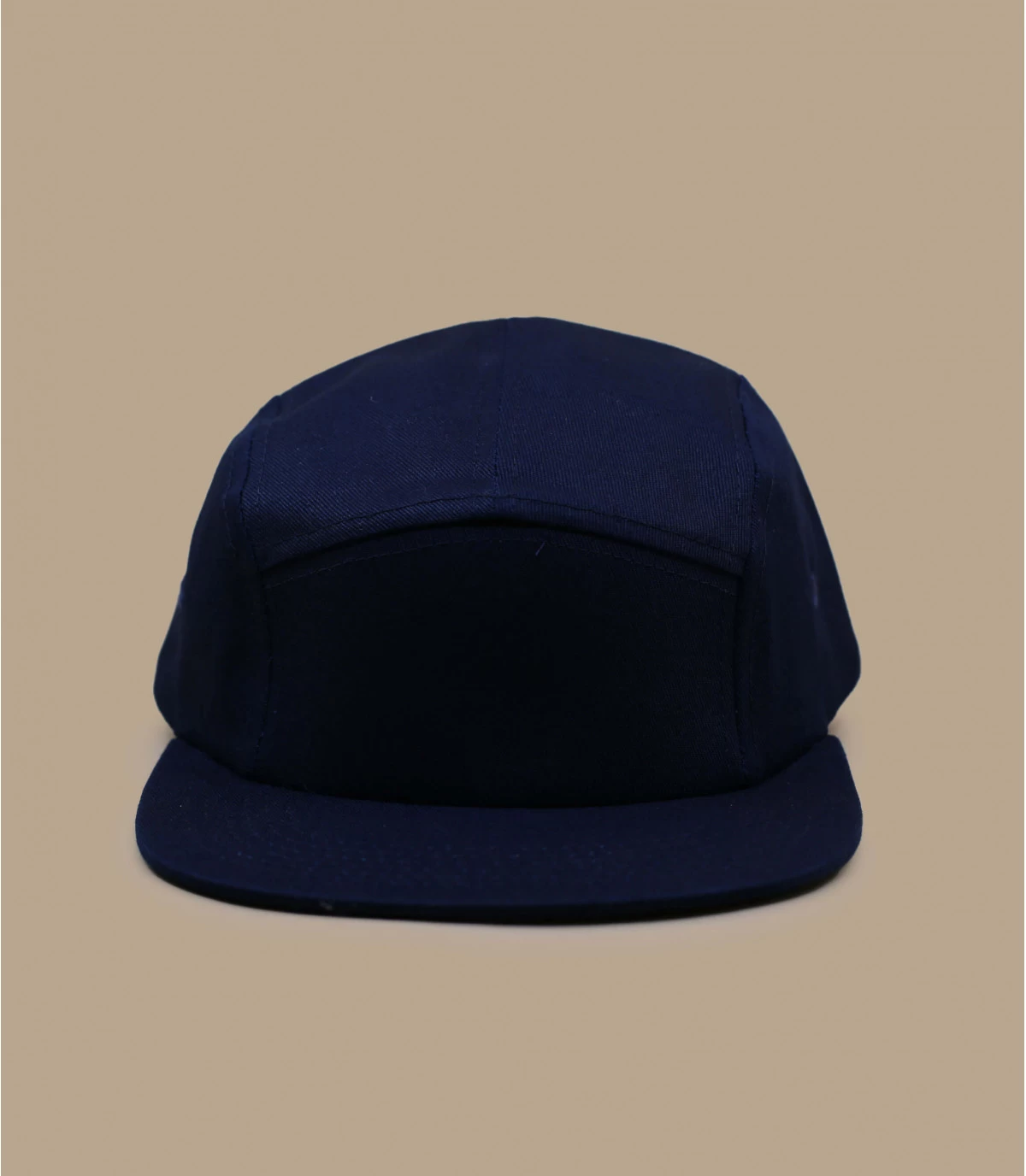 5 Panel bleu marine. Attache réglable avec clip à l’arrière. Tour de tête 55-60 cm.