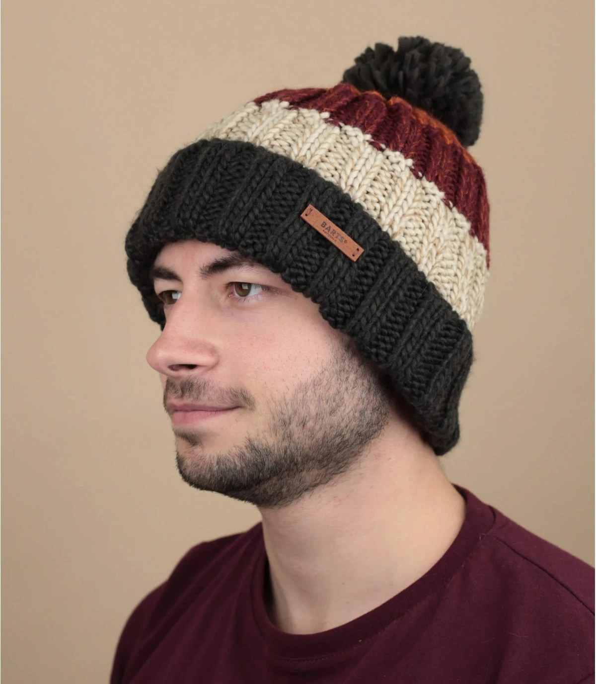 Ce bonnet à pompon d’un joli coloris bordeaux arbore un motif réconfortant avec des couleurs chaudes comme l’ocre, le bordeaux et le beige. Il va forcément donner de la profondeur à votre tenue.