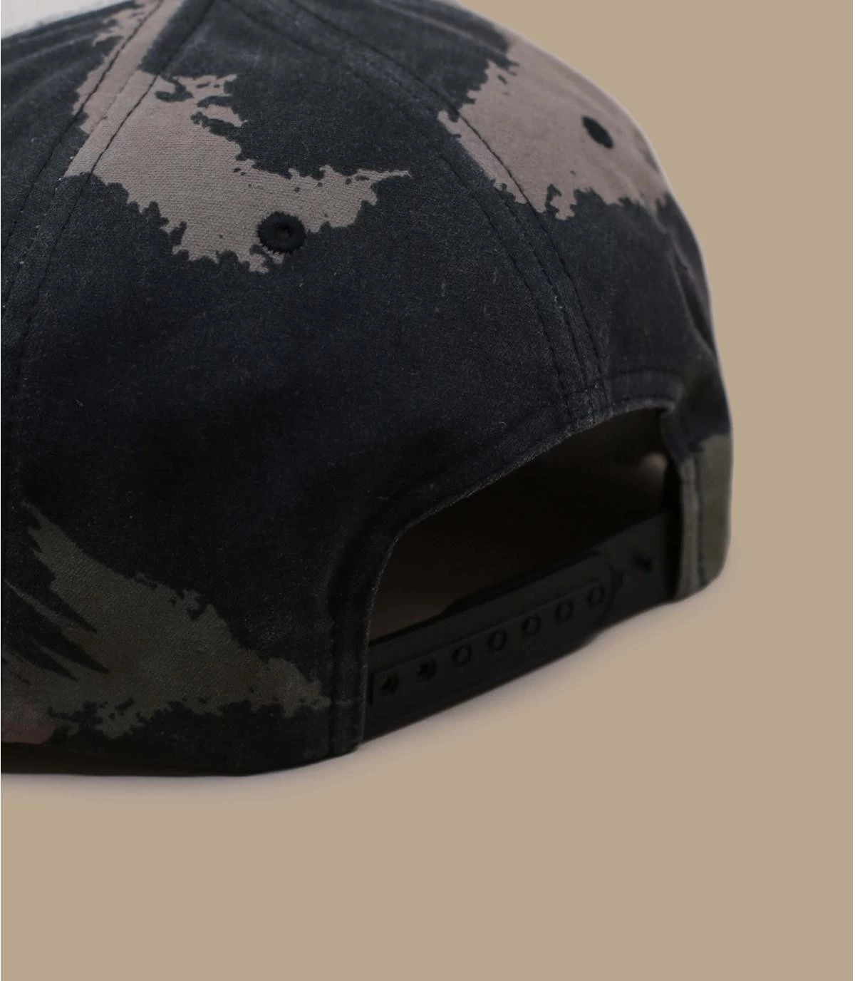 Optez pour une casquette snapback qui ne passera pas inaperçue ! Son imprimé camouflage de couleur khaki est original et se porte avec toute tenue casual. Elle porte aussi un patch noir avec le nom de la marque en blanc.