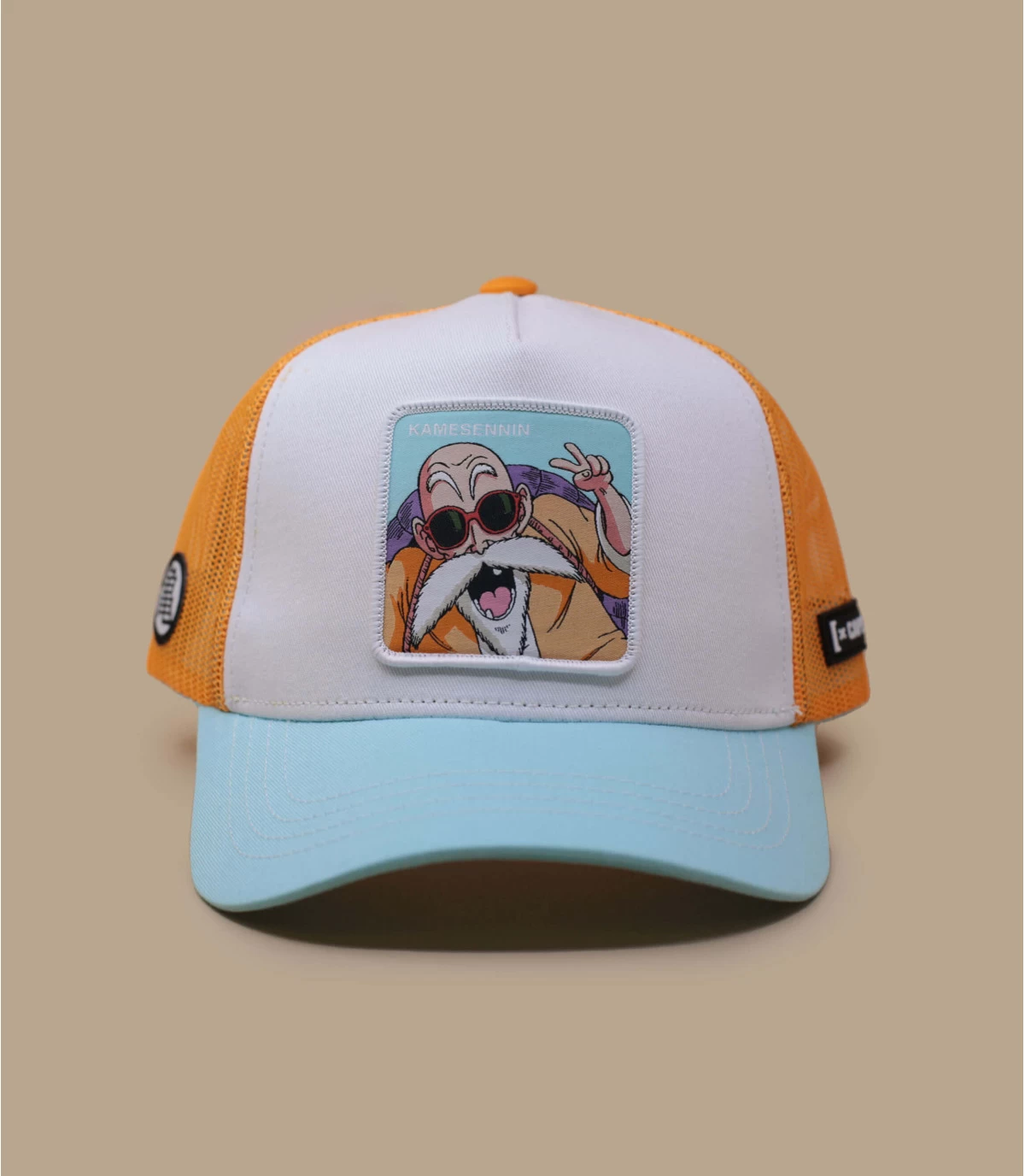 Vous cherchez à libérer le guerrier qui est en vous ? Vous voulez montrer au monde entier à quoi ressemble un vrai z-héros ? Ne cherchez pas plus loin que la casquette Trucker Dragon Ball Tortue Géniale de la marque Capslab ! Cette casquette trucker cool et vibrante est inspirée par le manga bien-aimé Dragon Ball. Dotée d’un grand logo au design audacieux représentant Tortue Géniale sur un champ lumineux de bleu, rose et blanc, cette casquette ne manquera pas de faire sensation où que vous alliez !