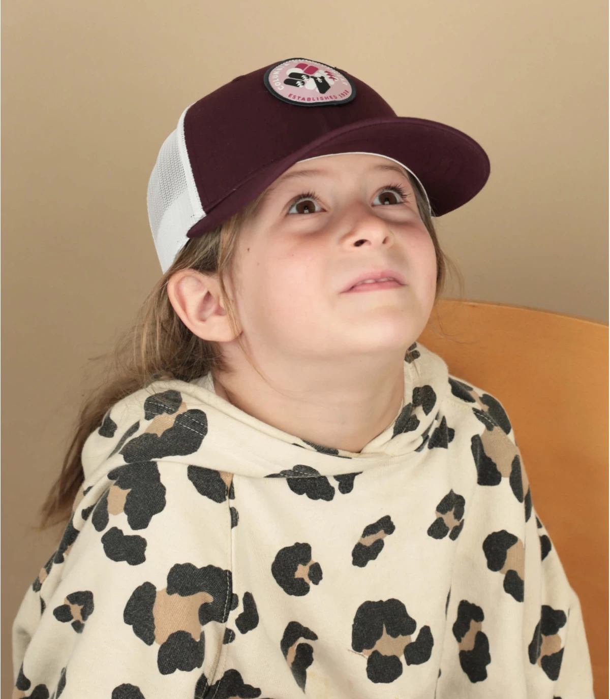 Cette superbe casquette trucker de couleur violette mettra de la bonne humeur dans la tenue de ville ou de randonnée de votre enfant. Le filet arrière est blanc et le nom de la marque est lisible sur le patch rond avant.