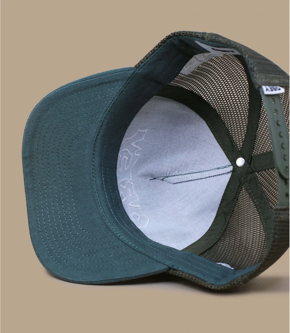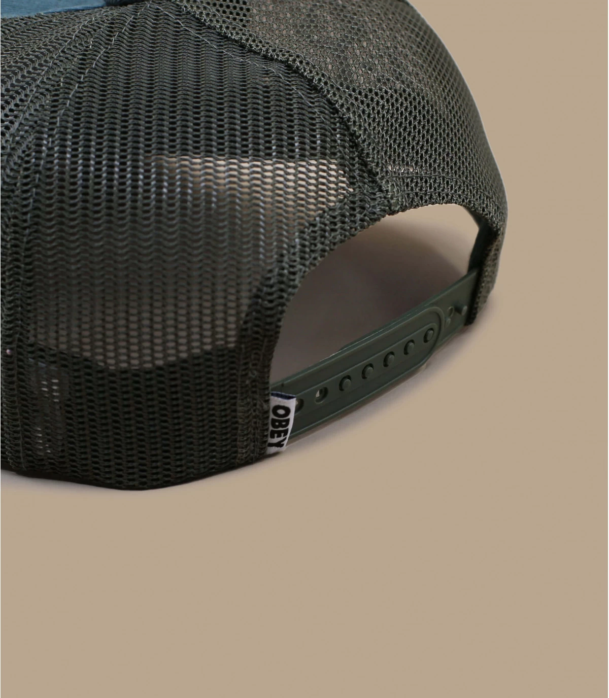 Choisissez une casquette trucker vert turquoise et noire avec un mood bien particulier ! Sur le côté on peut voir 2 masques avec une humeur joyeuse et triste. Un motif du champignon, cher à la marque Obey apparaît de l’autre côté.