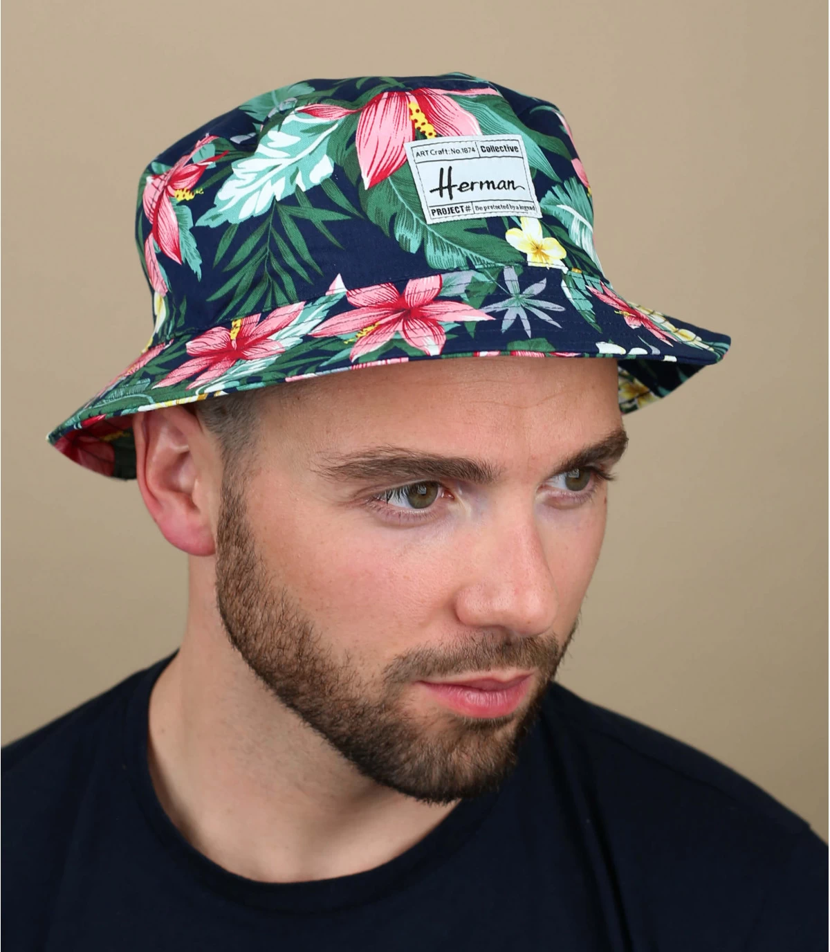 Portez un bob coloré cet été qui réveillera toutes vos tenues casual ! Le motif jungle de ce modèle de jolies fleurs roses est très coloré et tendance. Herman est écrit sur le patch avant.