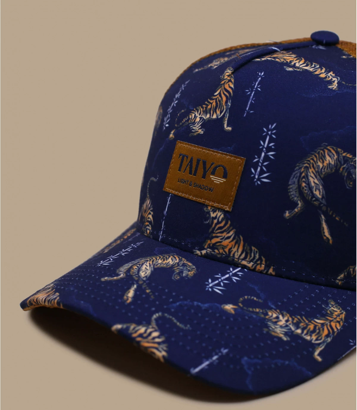 Spécialisé dans le headwear, Taiyo nous offre un imprimé tigres des plus original. La suédine sous visière ajoute une touche d’élégance à cette magnifique trucker 100% en matière recyclée.
