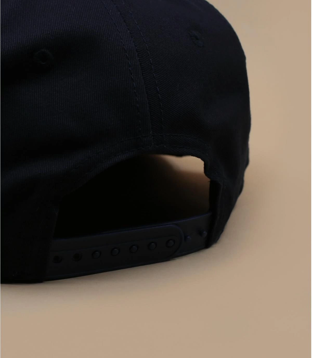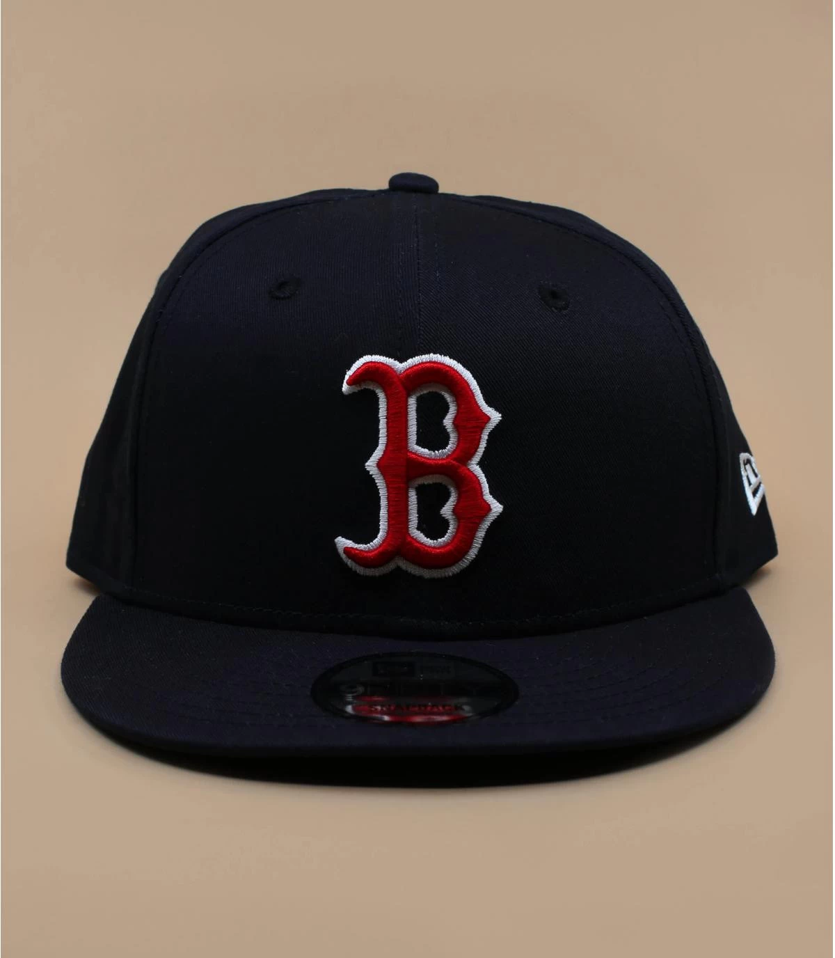 Snapback bleu nuit Boston team à visière plate. Languette de réglage à l’arrière et autocollant officiel sur la visière. Broderies de l’équipe et New Era blanches sur l’avant et le côté gauche.