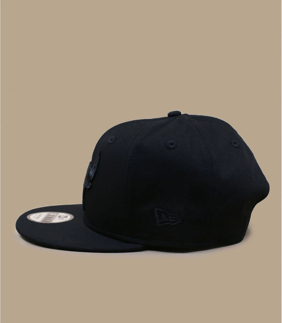 Cette casquette noire porte fièrement la masquotte des Bulls de Chicago, qui ont connu leur heure de gloire dans les années 90. Les éléments visuels sont en noir ton sur ton. Elle est réglable avec une languette.