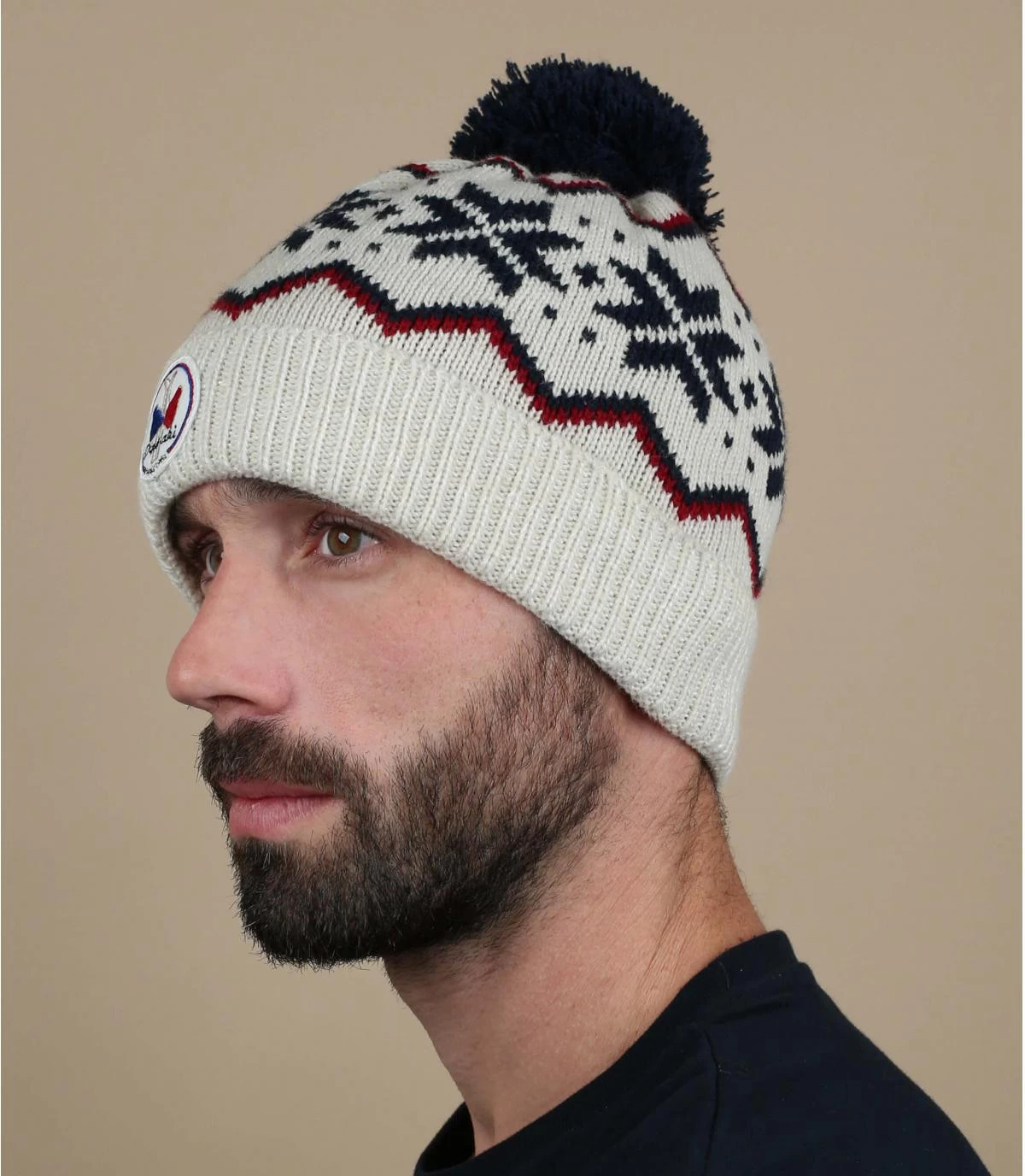 L’esprit alpin habite ce ravissant bonnet à pompon de couleur écru, décoré de charmants motifs traditionnels. La maille moelleuse à revers est intégralement doublée de polaire chaude et douce pour bien vous protéger du froid.