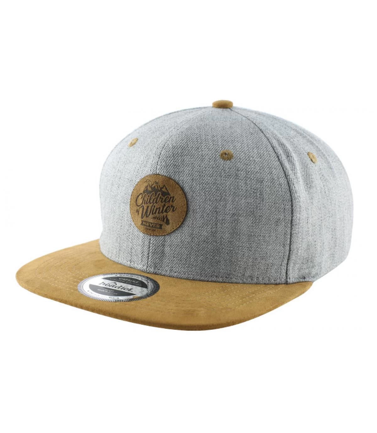 Snapback « Children of winter never grow old » de la collaboration entre Headict et la photographe de snowboard Vanessa Andrieux. Un magnifique logo gravé sur un patch en cuir vient s’assortir à la visière en suède. Une cap lumineuse pour les fondus de l’hiver.
