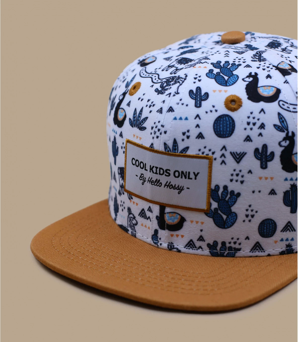 Partez en famille explorer la cordillère des Andes, avec cette sympathique casquette lama pour enfant que nous propose la marque française Hello Hossy. L’imprimé fantaisie mêlant cactus divers, lamas souriants et montagnes est combiné à une visière marron qui relève le tout.