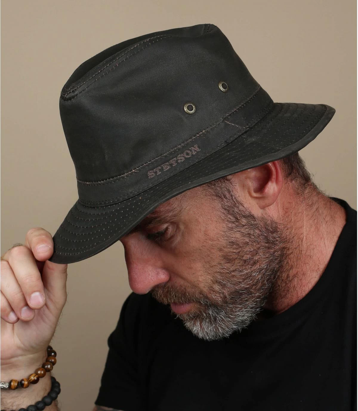 Chapeau d’aventurier en coton. A porter par tous les temps. Un compagnon fidèle pour vos ballades par temps pluvieux.