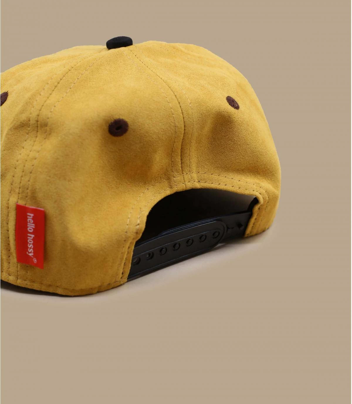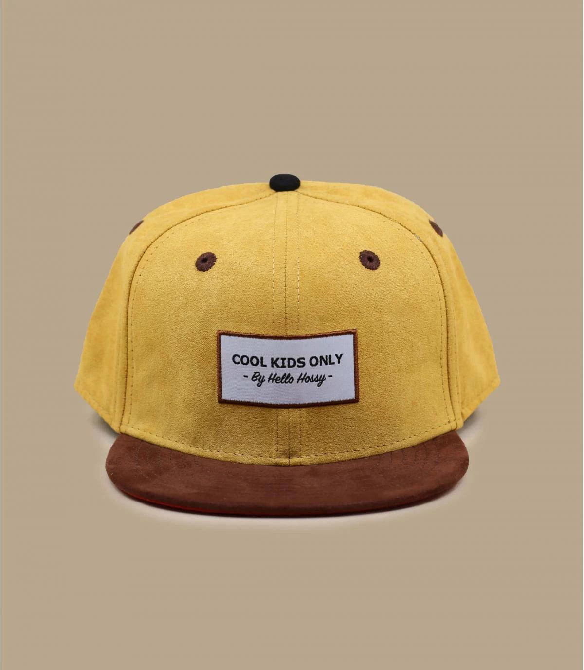 Repérez votre enfant de loin et égayez ses tenues de saison, avec cette remarquable snapback jaune moutarde de la marque Hello Hossy. Sa jolie visière en suède et son patch humoristique la complètent à la perfection.