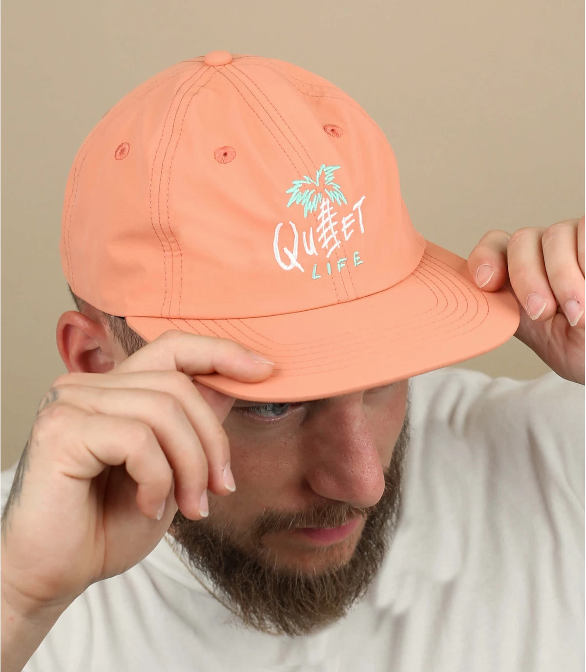 Ah la Californie et sa douceur de vivre, ses palmiers et ses plages de sable infinies ! Cette casquette de couleur corail vous y emmène avec sa broderie de palmier à l’avant. Sa visière plate vous donnera une allure décontractée.