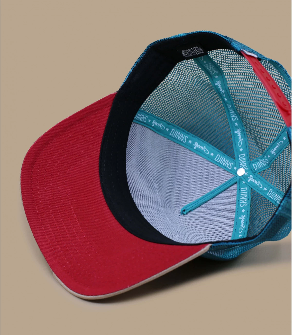 Portez une casquette qui donne de l’énergie grâce à son style et son imprimé fun ! Le front de cette casquette trucker est noir, son filet arrière est turquoise, sa visière est beige. On peut voir à l’avant un dessin de café avec le mot Coffee.